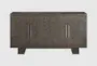The Modesto 68" Sideboard is a perfect blend of rustic charm and modern functionality. Crafted from solid and veneer rubberwood, this sideboard in a French Roast finish adds a touch of elegance to any kitchen or dining room. Its rectangular shape and sturdy construction make it an ideal piece for food prep and serving space.