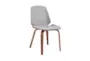 The Katara Grey Faux Leather + Walnut Wood Dining Room Accent Chair brings modern sophistication to your dining area. This chair offers a comfortable seating experience with its soft faux leather upholstery and sturdy walnut wood legs. Its armless design makes it perfect for dining rooms, kitchens, or any food prep and serving spaces.