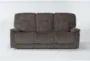 The Dax Brown 86" Manual Triple Reclining Sofa is a casual style piece designed for the living room, with a tight back and made of 100% polyester material in a shadow brown color. This sofa also features a theater-like experience with triple recliners for ultimate relaxation.