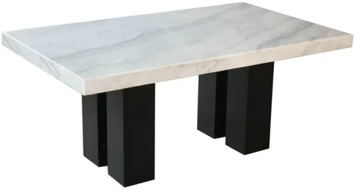 Elegant dining with a modern twist, Camila offers beautiful white marble with a choice of three chair options – silver or black easy-care polyurethane or an upscale blue velvet look. All chairs feature stretchers and nailhead trim to dress up any dining area. The dining collection is available in rectangular or square marble dining tops.