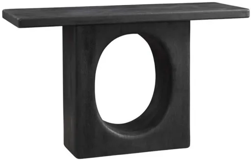 The Compass Console Table is a blend of rustic and modern design with a striking black finish. Crafted from sandblasted solid black mango wood, its substantial top and base offer a captivating presence. Mango wood boasts a naturally textured finish with a charming distressed effect.
