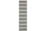 Enhance your outdoor space with the 1'10"X7'6" Indoor/Outdoor Fiber Rug in Spruce Stripe Cobalt & Grey. Perfectly suited for high-traffic areas, this modern geometric runner is designed to withstand the elements. Its multicolor stripes add a vibrant touch to any setting.