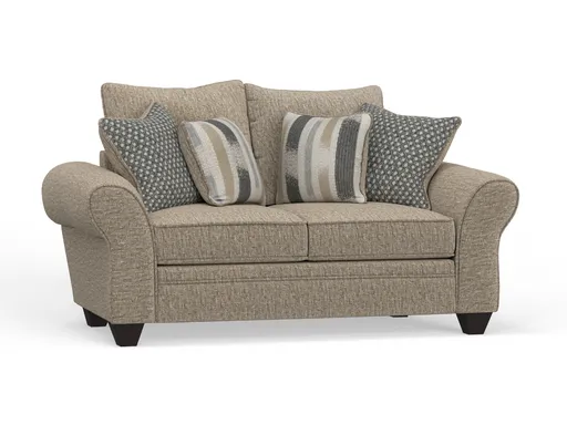 The Francesca Loveseat brings stylish comfort and quality craftsmanship to smaller spaces or as a complement to the Francesca Sofa. Available in either beige or charcoal fabric upholstery, this loveseat offers a versatile look that works beautifully with a wide range of décor styles. Its clean lines and tailored silhouette create a contemporary feel, while the included accent pillows in a bold chevron pattern add a touch of personality and visual texture.