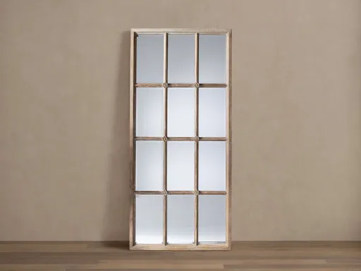 This handcrafted teak mirror adds subtle depth and a rustic, bohemian style to any room. Brighten any setting and increase its sense of space with this mirror’s minimalistic, multi-panel window-like design.