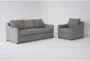 Enhance your living room with the Porthos Vintage Grey Fabric 2 Piece Sofa & Arm Chair Set. This modern set features a loose, reversible back for added comfort and versatility. Upholstered in 100% polyester, the vintage grey fabric adds a touch of sophistication to any space.