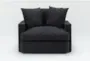 Introducing the Grand Down III Black Fabric 46" Chair, a modern addition to your living room. This oversized club chair is designed with comfort and style in mind, featuring supportive arms and plush cushions. Made in the USA, it combines quality craftsmanship with a sleek, minimalist design.