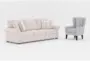 Amora Sand Beige Fabric 86" Queen Memory Foam Sleeper Sofa Bed|Anabelle II Grey Fabric Wingback Armchair With Espresso Finish