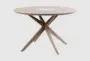 Enhance your outdoor dining experience with the Apola 48" Round Brown Eucalyptus Wood Stone Outdoor Dining Table. Crafted with a modern design, this table offers a perfect blend of natural materials for a stylish and functional addition to your outdoor space. Its round shape and small size make it ideal for intimate gatherings and cozy dinners.