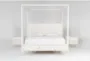 The Austen White King Footboard Storage Wood Platform Canopy 3 Piece Bedroom Set with 2 3-Drawer Nightstands brings a timeless touch to your sleeping space. Designed in a traditional style, this set features a majestic canopy bed and two matching nightstands, all in a soft white color. Made from oak veneer and solid rubberwood, the quality craftsmanship ensures durability and classic appeal.
