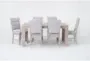 Transform your dining space with the Aysha Natural Wood 65" Rectangular Dining Set For 6. This modern set features a sleek design that fits perfectly in any dining room or kitchen. The grey finish and rubberwood construction add a touch of sophistication to your home.