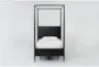 The Austen Black Twin Wood Platform Canopy Bed combines traditional style with modern functionality. This twin-sized bed features a black finish and is constructed from oak veneer and solid rubberwood, ensuring durability and a timeless look. The canopy design adds a touch of sophistication, while the integrated storage drawers provide practical solutions for keeping your space organized.