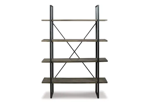 Got books? Bring them to the Gilesgrove bookcase. Its industrial mix of dark wood and black metal brings trendsetting vibes to your home. Four sturdy shelves hold your belongings with ease. Mix in some metallic decor for a home office look you can’t refuse.