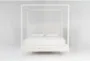 Austen White Queen Wood & Upholstered Platform Canopy Bed With Side & Footboard Storage | Poster | Drawers