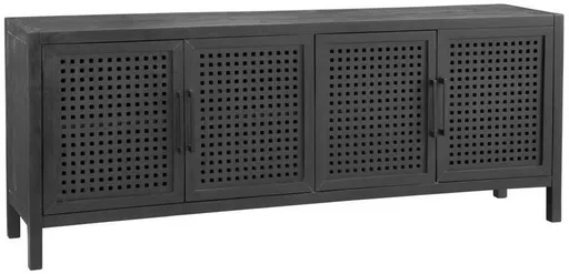 The Pentak server will be the highlight of the room, with it's natural wood and boho-industrial style. This large server features sand blasted natural mango wood in a matte black finish. The front four doors are accented with open-pierced fretwork detailing and large metal door pulls.