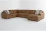 Introducing the Big Sur Saddle Brown Natural Leather 169" 4 Piece U-Shaped Modular Sectional with Armless Sofa & Right Arm Facing Chaise. This casual and versatile sectional is perfect for any living room, offering ample seating and a comfortable design. The rich volcano saddle color and 100% leather material provide a timeless and natural look that complements any decor.