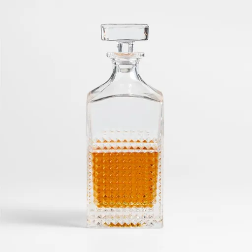 The perfect accessory for your bar cart, this beautifully crafted decanter has a classic squared-off profile, textured with a stunning geometric motif. With its exceptional clarity and craftsmanship, the decanter brilliantly showcases fine whiskey, bourbon and scotch.