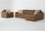 The Big Sur Saddle Brown Leather 3 Piece Modular Sectional with Right Arm Facing Chaise & Chair is a perfect addition to your living room. Its casual style and volcano saddle color bring a warm and inviting atmosphere to any space. Made from 100% leather, this sectional offers both comfort and durability.