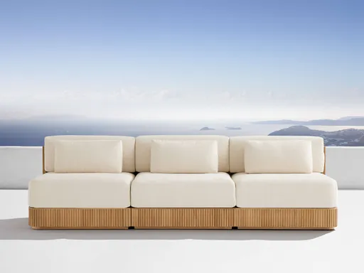 Celebrating the beauty of solid natural teak, our Beaumont Outdoor Collection creates a relaxing retreat with its lumbar pillows, soft curves, and classic reeding detailing. Comfortable, deep cushions nestled within the wraparound frame bring comfort to the modern-meets-graceful look.