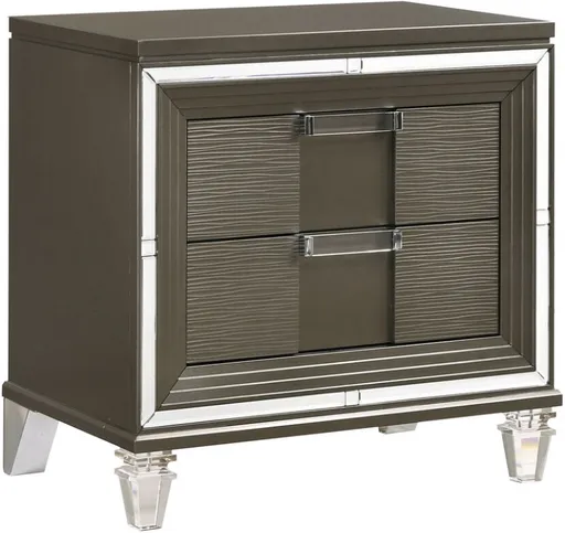 Add a bold, glamorous touch to your bedroom with the Twenty Nine nightstand. Featuring a sleek copper finish, chrome hardware, and textured drawer fronts, this nightstand offers both style and storage. Two spacious drawers keep your essentials within reach while elevating your space with modern, high-end appeal.