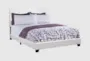 Introducing the Emily White Queen Faux Leather Upholstered Panel Bed, a perfect blend of modern and contemporary styles. This queen-sized bed features a super soft, white leather-look material with a simplistic upholstered headboard design, making it a chic addition to any bedroom. The low profile format of this platform bed frame ensures easy access, while the sleek block-style black plastic feet provide sturdy support.
