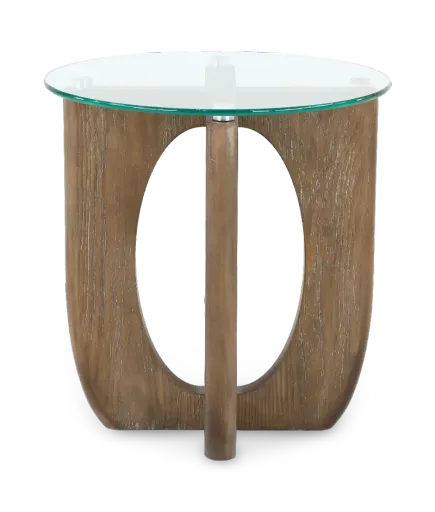 Elevate the style of your living space with the sophisticated look of this end table from the Lainey collection. This table features a demilune crescent shape, crafted from pine solids in a warm almond finish. The clean lines of the glass tabletop create the perfect place to display a vase of fresh flowers, family pictures, and other treasured items. The timeless design and sturdy construction of this statement piece blend seamlessly with existing decor and will add style to your home for years to come.