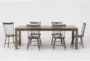 Enhance your dining experience with the Sawyer Brown Walnut Wood Rectangular Extendable Dining Table with Spindle Dining Chairs Set for 6. This modern set brings a warm, welcoming feel to any dining room with its medium walnut finish. Perfect for family gatherings or dinner parties, the extendable table ensures you always have enough space for everyone.