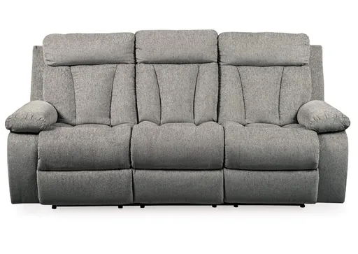 Your to-do list is complete, now it’s time for ultimate relaxation. This double reclining sofa is plush in all the right places, and will support you longer than you can binge watch your favorite TV show. The neutral upholstery is ready for a patterned throw pillow and some of your time. The middle seat’s back drops down into convenient table top with cup holders, the perfect resting spot for tablets and magazines.