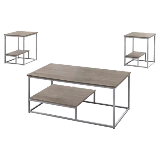 Bring a fresh, modern, and functional touch to your living space with this unique three-metal coffee table set. The simple contemporary design features a laminated wood-look finish and is accented with a black metal trim, and provides a spacious tabletop with a raised bottom half shelf for additional storage and display. The matching end tables are perfect to place a lamp, pictures, or other decorative objects, while the coffee table will be an attractive focal point in your living room, den, or family room. Available for Online Purchase Only. Assembly required. This product ships direct from the manufacturer, so RC Willey Delivery is not available. Set includes one coffee table and two end tables.