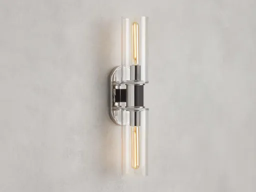 Elevate your bathroom aesthetic with our Arhaus-exclusive Harlin Sconce Collection. Thoughtfully designed to fit any space, this versatile collection is enhanced by the arched details on each racetrack oval backplate, carefully crafted to capture a touch of modern sophistication.