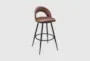 The Eberle 26" Swivel Counter Height Stool is the perfect addition to your dining room or kitchen. Designed with a modern style, it features a sleek black metal frame and stain-resistant brown faux leather upholstery. The armless design and swivel functionality make it a practical and stylish choice for any counter height space.