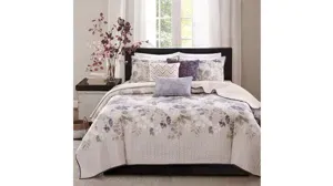 Create a calming oasis with the Madison Park Luna 6 Piece Reversible Coverlet Set. This beautiful collection features a watercolor floral print across the center of the coverlet that dissipates to solid ivory on the top and bottom. Three decorative pillows play up the soft purple and taupe's to pull this collection together.