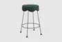 The Meur Green Finish Upholstered 26" Counterstool with Black Leg Finish is a stylish addition to any modern home. Its rich green boucle fabric and contemporary design make it a standout piece. The matte black metal legs provide a sleek and sturdy foundation.