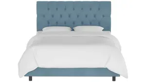 Craft an elegant centerpiece for any bedroom in your home with the Blanchard hand upholstered bed that features a tufted square headboard design. Made to order, this piece offers a stately, traditional feel and it is manufactured in Illinois. Both the headboard and bed rails are wrapped in a plush Textured Linen fabric, and easily attach to the metal bed frame that is provided. Expert diamond tufting adds a special appeal and stylish look that is truly timeless. Let this bed serve as the anchoring piece and inspiration for your bedroom design.