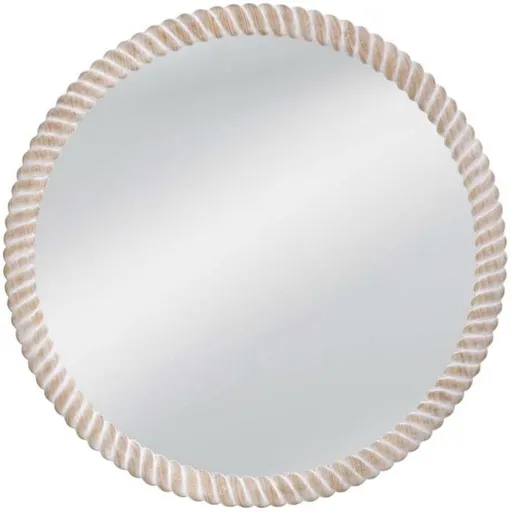The Ely Wall Mirror boasts a charming round frame adorned with a rustic rope motif, creating a warm and inviting focal point for any room. Finished in a weathered white tone, it exudes timeless elegance while adding a touch of coastal charm to your living space.