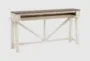 The Joanna Farmhouse White 68" Sofa Table Bar Desk with USB combines rustic charm with modern functionality. Crafted from pine wood, this rectangular table features a distressed white finish that adds a touch of farmhouse elegance to any room. The built-in USB charger and drink shelf make it a practical addition to your living space.