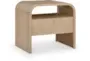 The Tahl Natural 1-Drawer Open Shelf Nightstand brings modern sophistication to your bedroom. Its natural wood finish pairs effortlessly with a variety of decor styles, creating a serene and inviting ambiance. The open shelf design provides convenient access to your essentials while the single drawer offers additional storage.