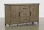 Bring a rustic touch to your office or dining room with the Gables Brown Solid Pine Wood 66" 2 Door Sideboard Buffet with Storage. This flint oak sideboard offers ample storage with its three drawers and shelves, making it perfect for organizing your essentials. The sturdy solid pine construction ensures long-lasting durability and natural charm.