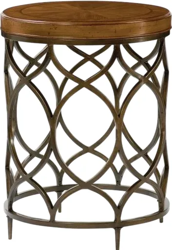 The Hammary® Hidden Treasures Round Lamp Table is a charming accent piece that merges classic warmth with decorative metalwork. The top is crafted from wood overlaid with veneersspecifically Pecky Pecan and Laurel Burlthat give it a richly textured brown finish.