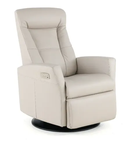 Now at RC Willey, the Cinder gray leather power swivel glider recliner offers unsurpassed comfort with high quality and space-efficient design. It gives you glide, swivel, reclining as well as adjustable headrest support, lumbar, and integrated footrest. The chair is made with cold-cure molded foam cushioning. This unique space-age technology ensures comfort, body correct support as well as durability. It meets the highest quality standards. The reclining mechanism with integrated footrest is made by the largest specialized mechanism supplier in the world and the construction is based on a hardwood and steel frame with its own unique molded foam. Get yours today and start living in the lap of luxury.