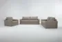 Introducing the Araceli II Taupe Beige Brown Vegan Faux Leather 3 Piece 95" Queen Sleeper Sofa Loveseat & Oversized Chair Set. This modern set features a queen sleeper sofa, a loveseat, and an oversized chair, all upholstered in luxurious taupe faux leather. Perfect for your living room, this set combines style and functionality to create a welcoming and comfortable space.