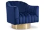 The Farrah Navy Blue Velvet Accent Chair With Gold Swivel Base is the perfect addition to your living room. Its modern design features a plush velvet fabric that provides both comfort and style. The gold swivel base adds a touch of sophistication, making this chair a standout piece in any space.