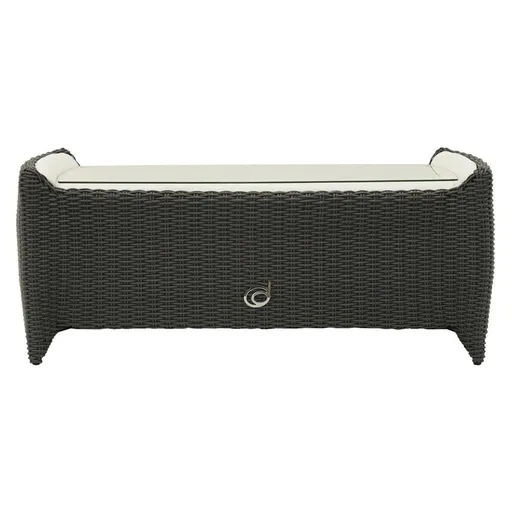 The Luxor Gray Coffee Table’s design is perfect for adding both style and durability to your patio’s living area. A smooth clear tempered glass top is perfect for placing snacks and drinks on which covers the pure white Marina PLUS synthetic leather with a frame that is made of both aluminum and pebble gray resin wicker so that this table is long-lasting for you to enjoy for many years.