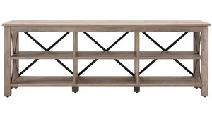 Strong geometric lines set this modern farmhouse-inspired Curlew 68" TV stand apart. Its X-shaped black metal accents offset the rich wood tone, creating a warm neutral color palette that will blend seamlessly into any design scheme. A must-have for living areas and entertainment spaces, this TV stand sets the stage for the big game, a movie marathon, or that season finale everyone's been talking about.
