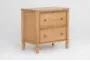 With its simplified take on classic design, our Elsie 2-drawer nightstand brings truly timeless style and tremendous value to your space. Subtle traditional details like elegant turned feet, softly curved edges and beaded drawer fronts culminate in a graceful yet approachable look that's easy to love. Crafted with solid wood and cathedral oak veneers in a honey finish, the piece offers exceptional quality and durability. Unique natural characteristics abound, including wood tone variation and aging by mineral deposits. Deep black wire brushing adds dimension. Enjoy plenty of functionality and storage thanks to drawers featuring dovetail joinery and full-extension ball-bearing glides for smooth operation. Thanks to USB, it provides convenient bedside charging.