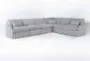 Introducing the Jolene Silver Grey 158" 6 Piece Power Reclining L-Shaped Modular Sectional, designed to elevate your living room comfort. This modern sectional features three power recliners and USB ports for ultimate relaxation and convenience. Its reversible orientation and deep-seated design ensure that everyone can enjoy a cloud-like seating experience.