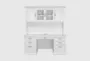 The Millie White Knee Hole Wall Desk Credenza with Hutch combines traditional style with modern functionality. Crafted from natural wood, this elegant white desk features ample storage and a power center for all your charging needs. Perfect for any home office, it offers a timeless and classic look that complements any decor.