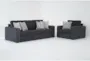 Monterey Twilight Blue Grey Fabric 95" 2 Piece Sofa & Oversized Armchair Set | Loose Reversible Back