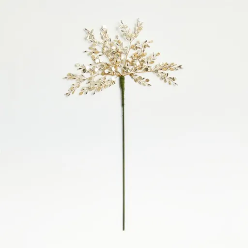 Add a shower of sparkles to your holiday decor with our exclusive gold pick Christmas tree ornament. Handcrafted by highly skilled artisans, the delicate spray features metal flecks, beads and sequins that shine like glass, reflecting the light from candles and string lights. Stick a pick in a flower arrangement, amongst a wintry tablescape or in your Christmas tree to instantly create festive glamour.