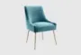 Enhance your dining area with the Trix Sea Blue Velvet Metal Fabric Dining Side Chair. This modern, armless chair offers a refined touch to any dining room or kitchen setting. The luxurious sea blue velvet fabric and sleek metal legs create a stylish and comfortable seating experience.