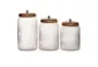 Enhance your kitchen or pantry with this set of 3 antiqued clear glass canisters. These round canisters are perfect for storing a variety of items while adding a touch of traditional charm to your space. The clear glass design allows you to easily see the contents, making organization a breeze.